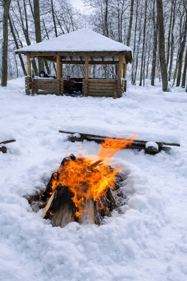 Gdy zapada zmrok (a zimą dzieje się to szybko!), blask ognia odbijający się od lodu na jeziorze tworzy niesamowitą atmosferę.