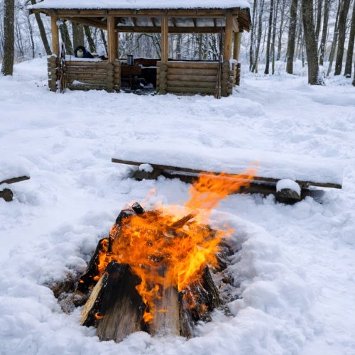 Po każdym kuligu lądujemy nad samym brzegiem jeziora. Dlaczego? Bo to właśnie tam czeka na Was rozpalone ognisko!